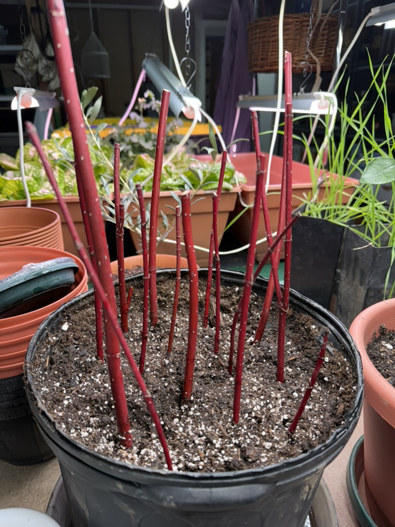 Red twig dogwood cutting being rooted